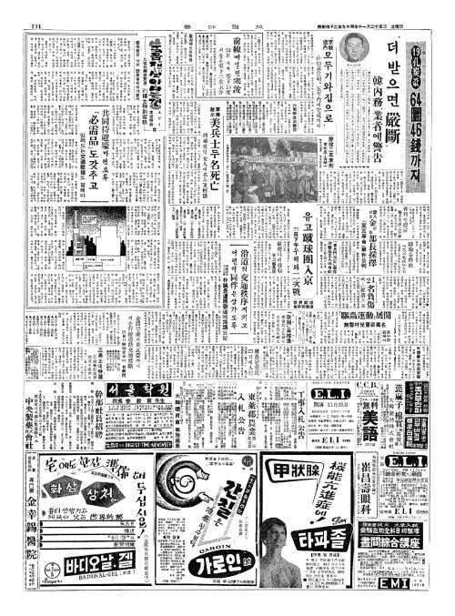 - 19孔炭(공탄)값64圜(원)46錢(전)까지"京畿道內(경기도내)모두기와집으로"