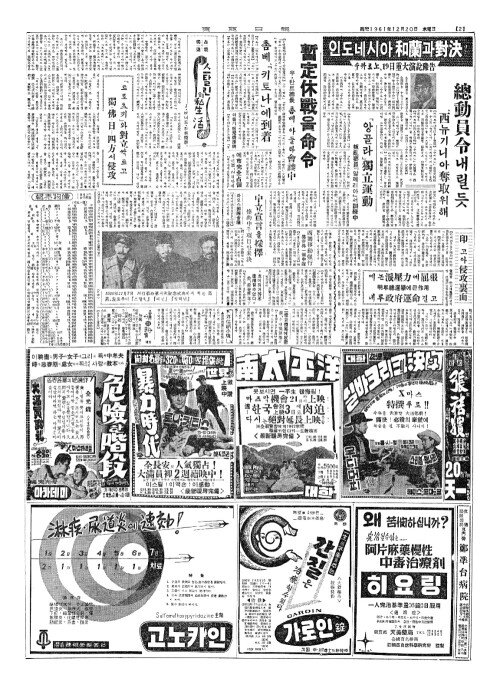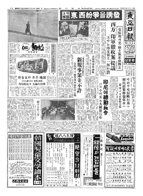 - 인도네시아、和蘭(화란)과對決(대결)? 수카르노、19日重大演說豫吿(일중대연설예고)