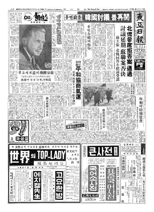 - "韓國(한국)은『유엔』과協調(협조)" 언커크代表(대표)、政委(정위)서力說(력설)