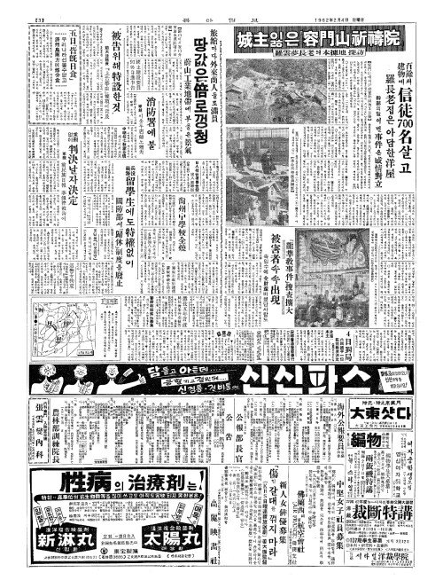 - 中學校七敎室全燒(중학교칠교실전소) 세곳에서火災(화재)