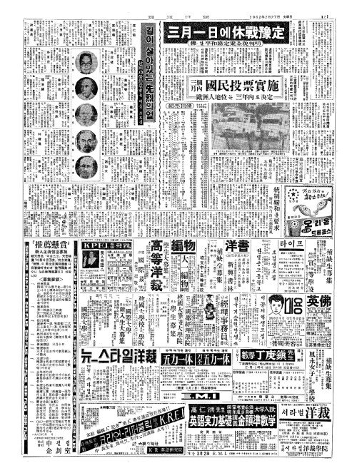 - 26日(일)『알』亡命議會(망명의회) 休戰協定認准豫想(휴전협정인준예상)