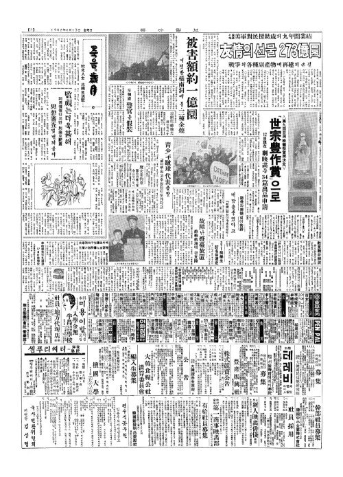 - 서울地區(지구) 美軍對民援助處(미군대민원조처)의 九年間業績(구년간업적) 友情(우정)의선물 273億圜(억원)
