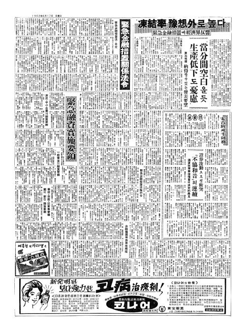 - 閣議(각의)서公布議決(공포의결) 緊急金融措置法(긴급김융조치법)