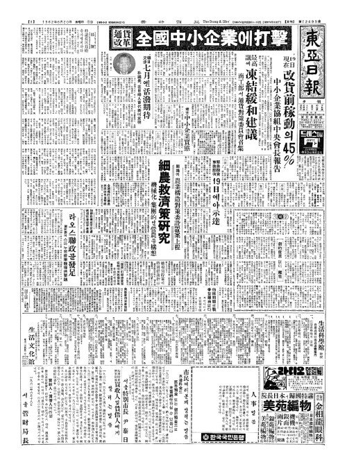 - 通貨改革(통화개혁) 全國中小企業(전국중소기업)에打擊(타격)