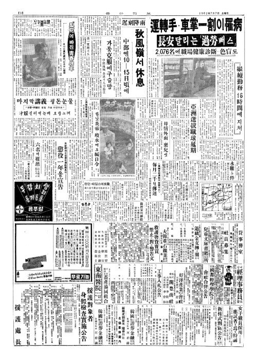 - 運轉手(운전수)·車掌一割(차장일할)이罹病(이병)
