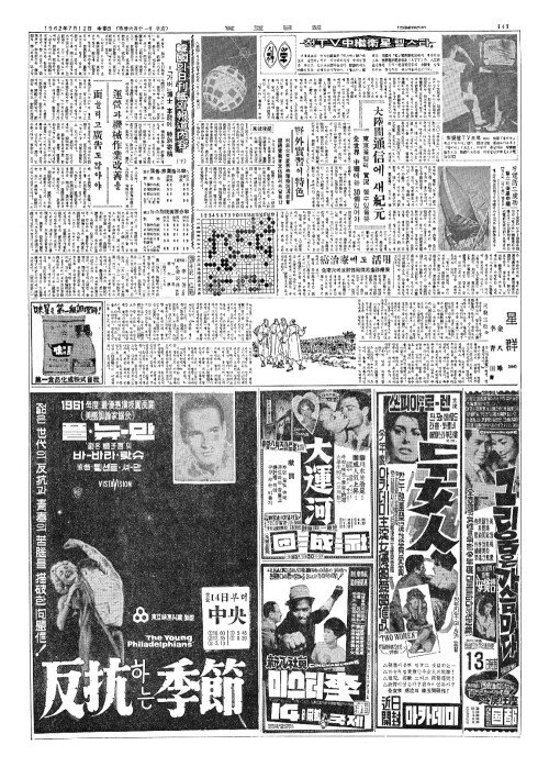 - 大陸間(대륙간)텔레비中繼(중계)마침내實現(실현) 美通信衛星發射(미통신위성발사)에成功(성공)