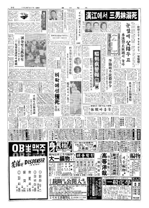 - 漢江(한강)에서 三男妹溺死(삼남매닉사)