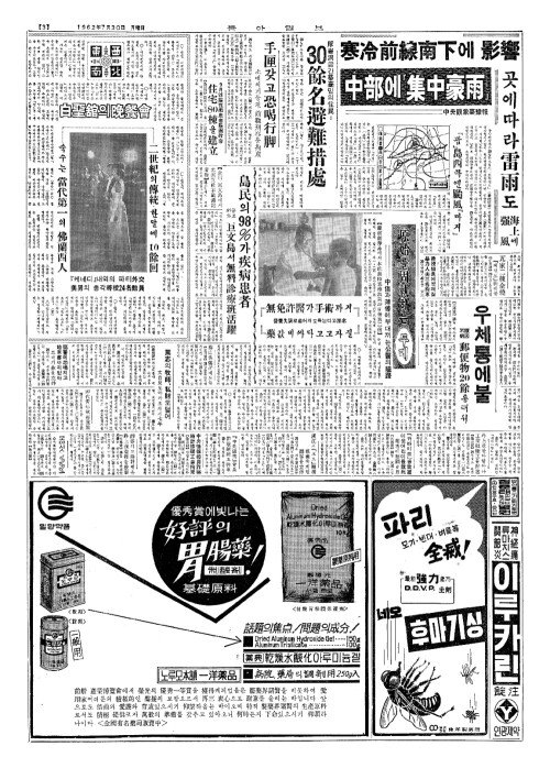 - 寒冷前線南下(한랭전선남하)에 影響(영향) 中部(중부)에「集中豪雨(집중호우)」