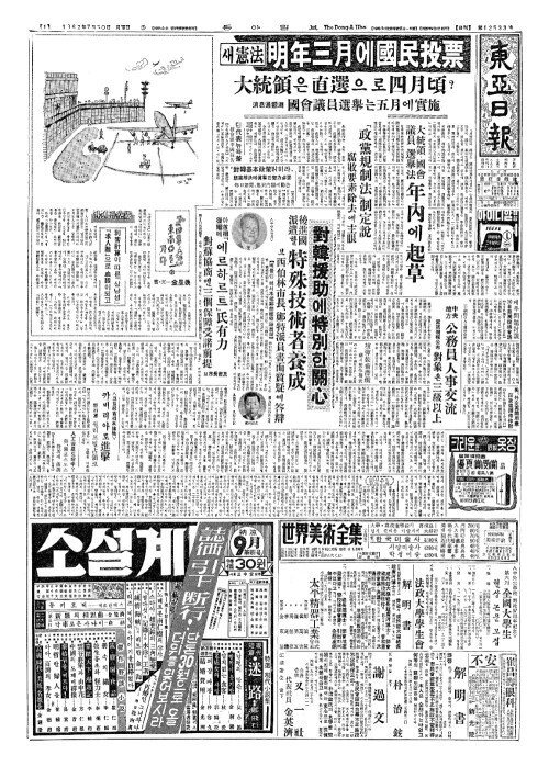 - "對韓援助(대한원조)에特別(특별)한關心(관심)" 後進國(후진국) 派遣(파견)할 特殊技術者養成(특수기술자양성)