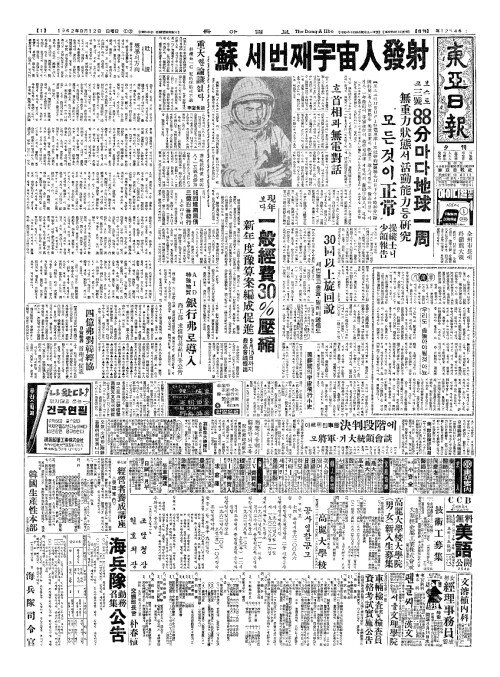 - 보스토크三號信號(삼호신호) 西獨天文臺(서독천문대)서捕捉(포착)