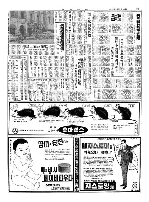 - 國防(국방)·內務相辭表(내무상사표) 기도大統領却下(대통영각하)
