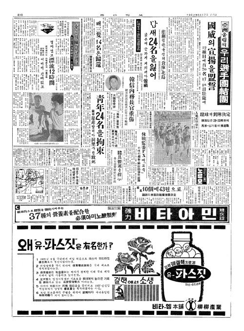 - 亞洲大會(아주대회) 第一陣(제일진)、오늘壯途(장도)에