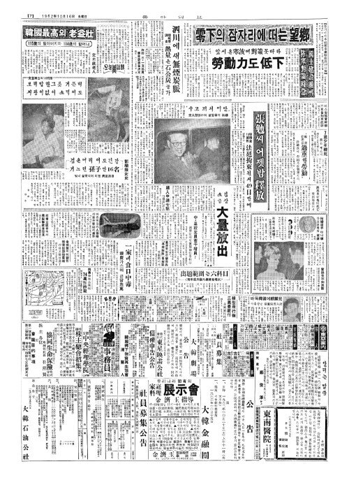 - 張勉(장면)씨 어젯밤 釋放(석방)