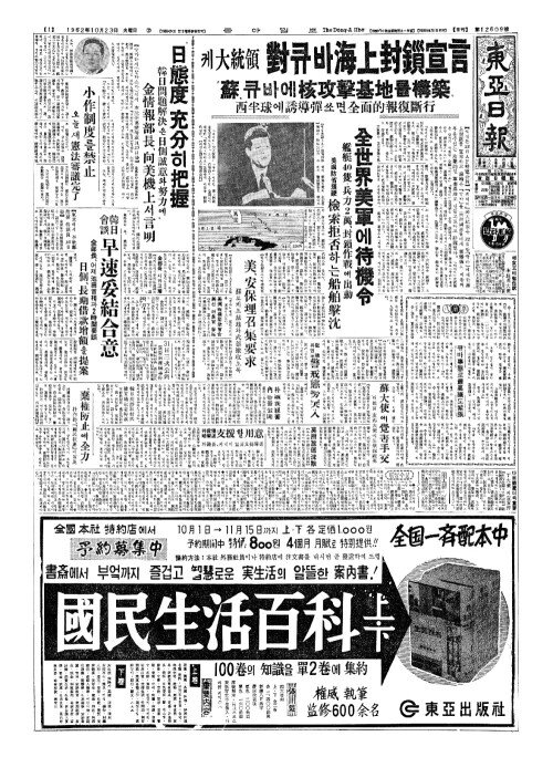 - 케大統領(대통령) 對(대)큐바海上封鎻宣言(해상봉쇄선언)