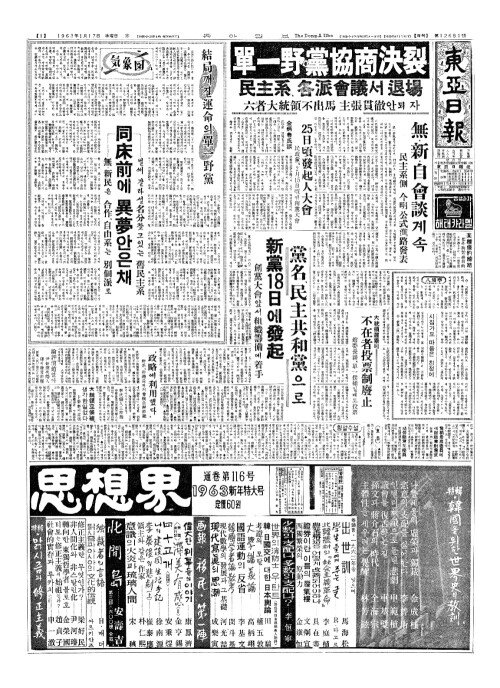 - 黨名(당명)、民主共和黨(민주공화당)으로 新黨(신당)18日(일)에發起(발기)