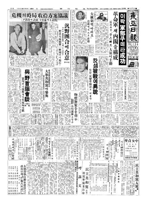 - 危機(위기)의 時局(시국) 收拾方案協議(수습방안협의) 尹潽善(윤보선)씨、許政(허정)·卞榮泰(변영태)씨를 訪問(방문)