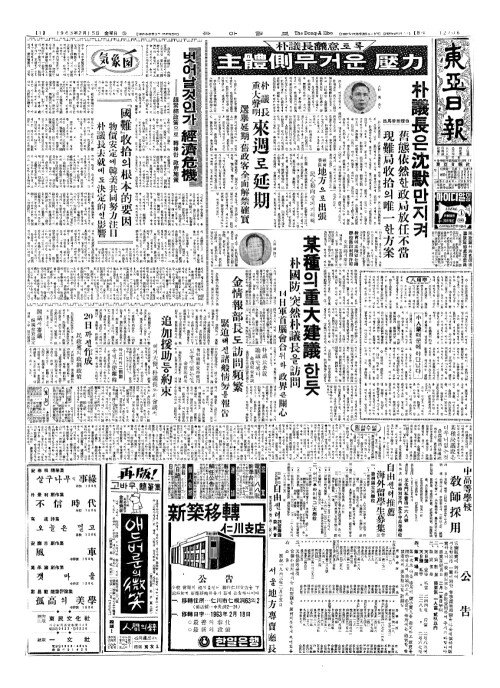 - 朴議長(박의장) 重大聲明(중대성명) 來週(내주)로延期(연기)