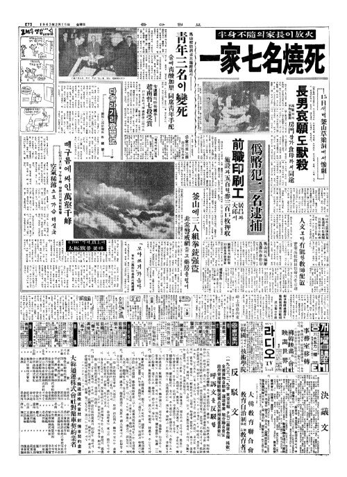 - 半身不隨(반신부수)의家長(가장)이放火(방화) 一家七名燒死(일가칠명소사)
