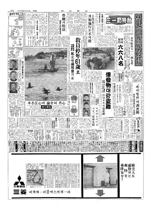- 三(삼)·一節特赦(일절특사) 政治犯(정치범)등 一九二九名假釋放(일구이구명가석방)