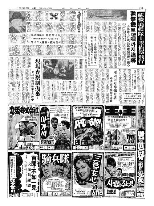 - 蘇機(소기)、美艦隊上空偵察飛行(미함대상공정찰비행) 邀擊機(료격기)로150哩(리)까지追跡(추적)