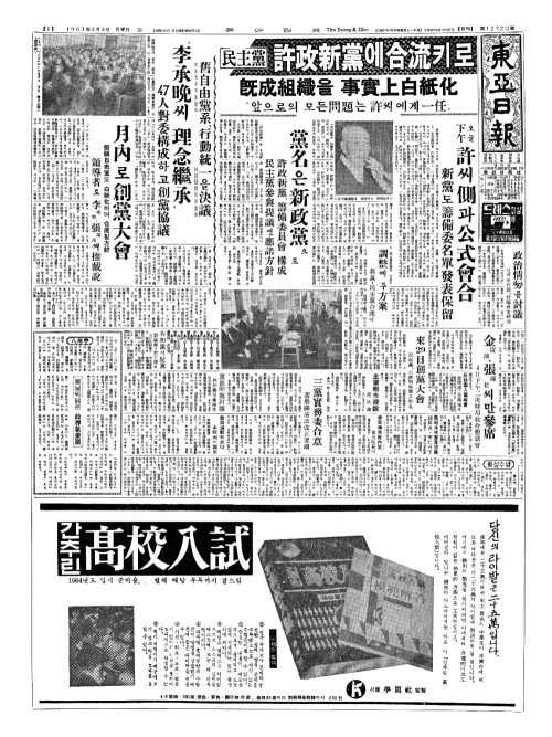 - 民主黨(민주당) 許政新黨(허정신당)에合流(합류)키로