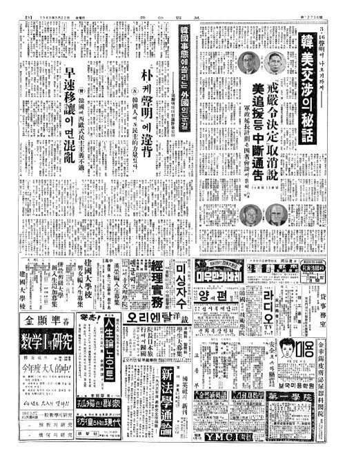 - 尹潽善(윤보선)씨談(담) 民意昻揚(민의앙양)은어떤 힘으로도못눌러