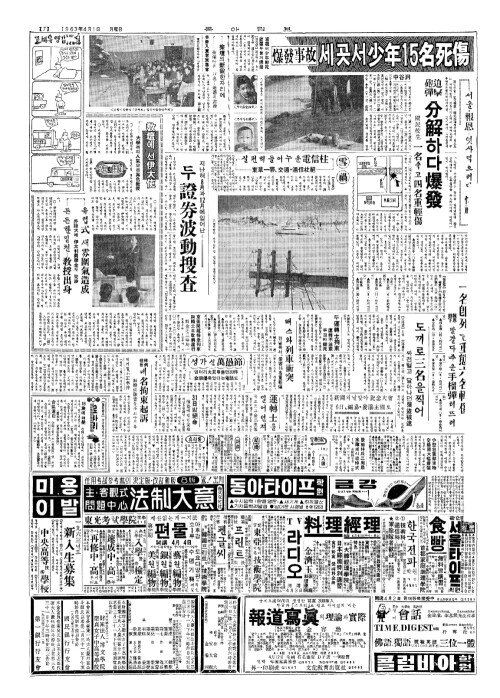 - 爆發事故(폭발사고)세곳서少年(소년)15名死傷(명사상)