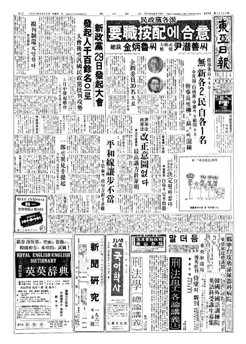 - 新政黨(신정당)、29日發起大會(일발기대회) 發起人千百餘名(발기인천백여명)으로
