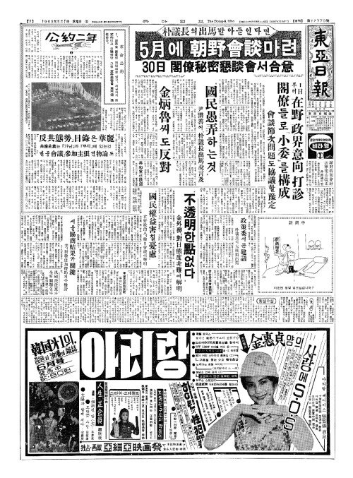 - 朴議長(박의장)의出馬(출마)받아들인다면 5月(월)에 朝野會談(조야회담)마련