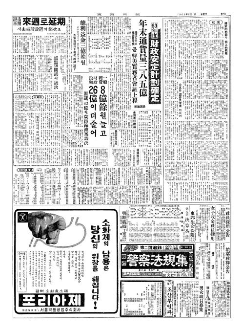 - 63年度(년도) 財政安定計劃確定(재정안정계획확정)