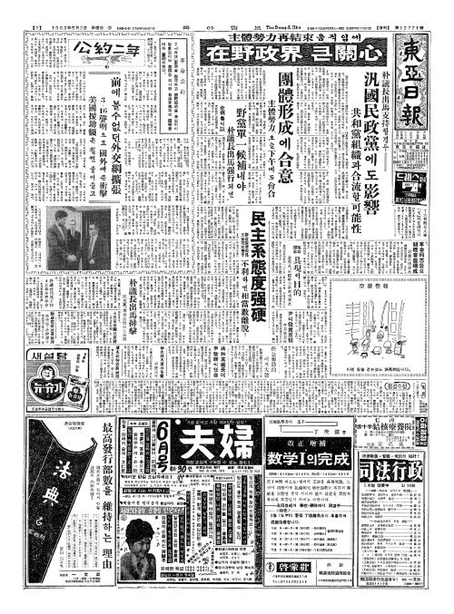- "野黨單一候補(야당단일후보)내야朴議長出馬强行(박의장출마강항)되면"