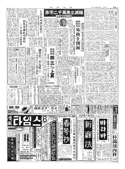 - 赤字二千萬弗(적자이천만불)로減縮(감축) 元企劃院長言明(원기획원장언명)
