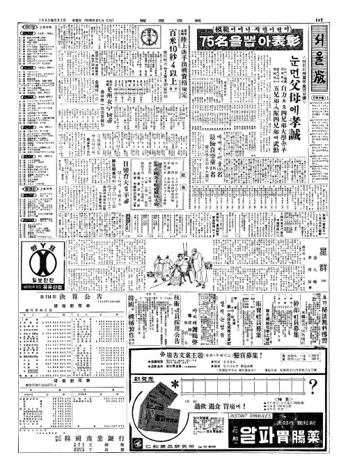 - 模範(모범)어머니·착한어린이 75名(명)을뽑아表彰(표창)