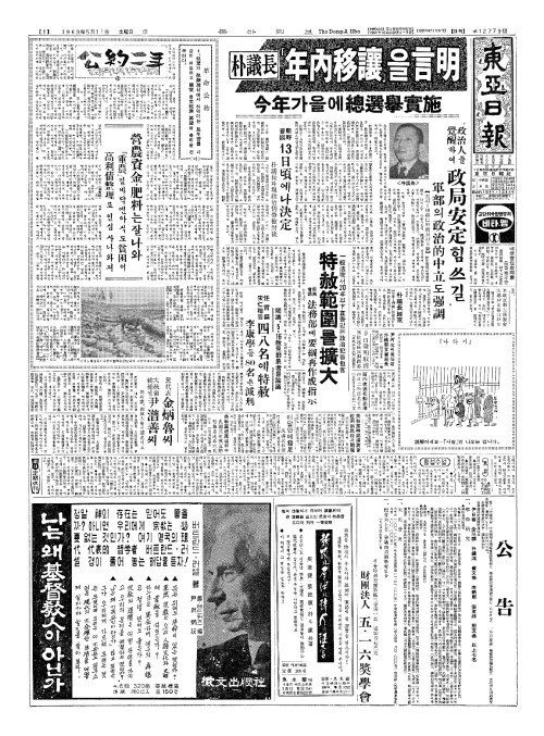 - 軍政反對大演說會(군정반대대연설회) 大邱(대구)13日釜山(일부산)15日(일)