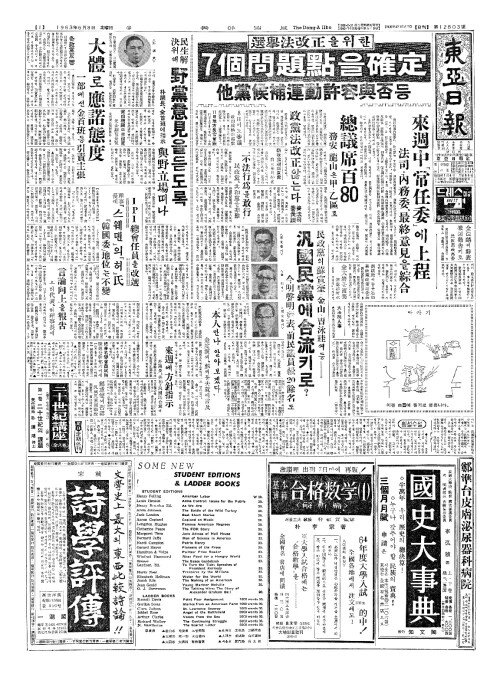 - 民政黨(민정당)의蘇宣奎(소선규)·金山(김산)·曺泳珪(조영규)씨등 汎國民黨(범국민당)에合流(합류)키로?