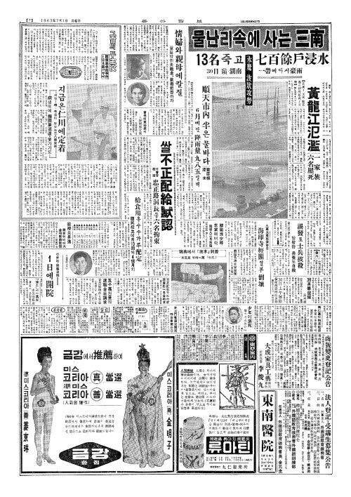 - 順天市內半(순천시내반)은 물바다 數百棟浸水(삭백동침수)
