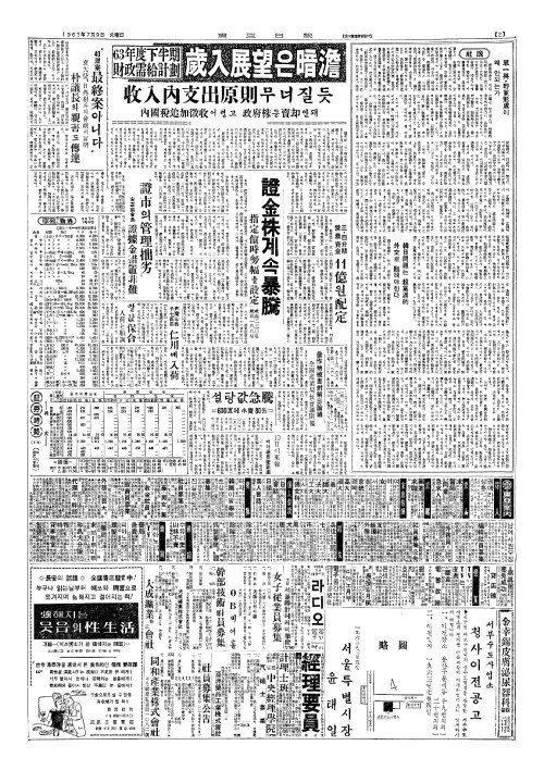 - 63年度下半期(년탁하반기) 財政需給計劃(재정수급계획) 歲入展望(세입전망)은暗澹(암담)