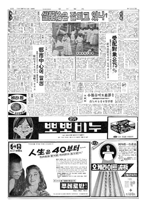 - 漢江邊水災民(한강변수재민)에『도시락』을分配(분배) 祥明女中高生(상명녀중고생)