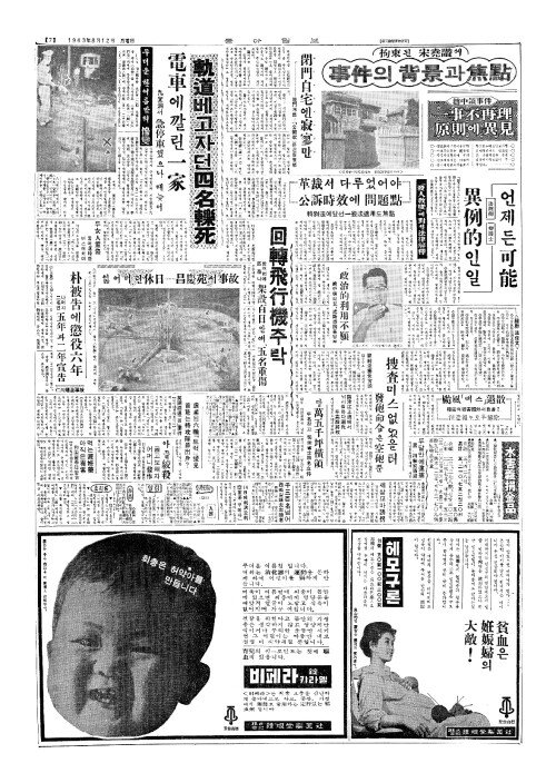 - 前內閣首班(전내각수반) 宋堯讃(송요찬)씨拘束(구속)