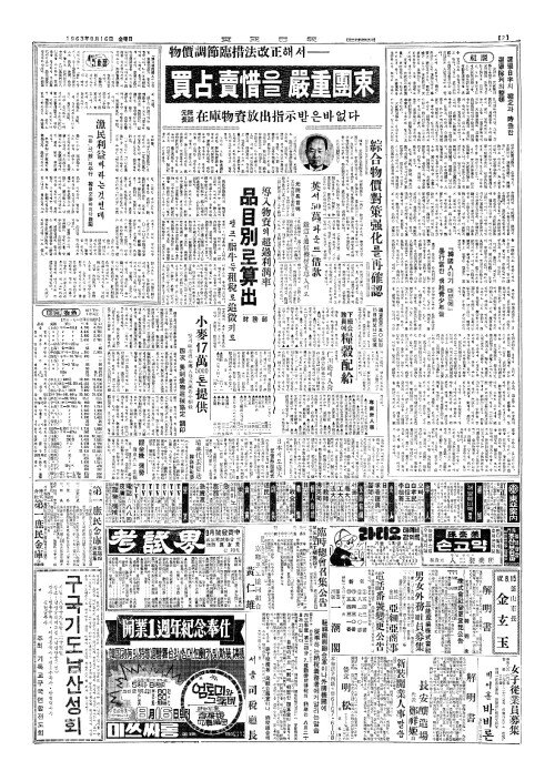 - 物價調節臨措法改正(물가조절임조법개정)해서 買占(매점)·賣惜(매석)을 嚴重團束(엄중단속)
