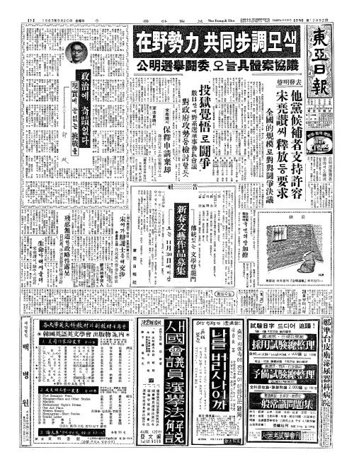 - 千餘聽衆(천여청중)모여 光州共和黨演說會(광주공화당연설회)