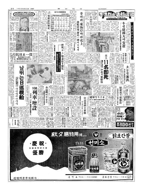 - 平和食糧協定調印(평화식량협정조인) 韓國(한국)에美小麥(미소맥) 三千餘(삼천여)톤提供(제공)