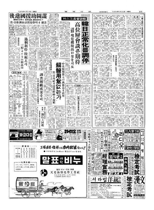 - 「러스크」長官訪韓(장관방한) 韓日正常化(한일정상화)를調停(조정)