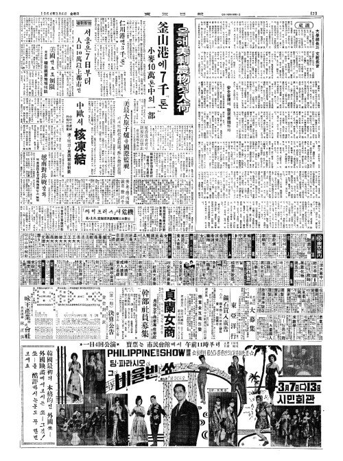- 호놀루루新聞社(신문사)서 同和通信張專務(동화통신장전무)에 新聞印刷施設(신문인쇄시설)기증