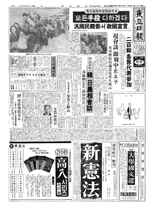 - "日(일)서平和線蹂躪(평화선유린)하는동안=韓日協商(한일협상)은無用(무용)"