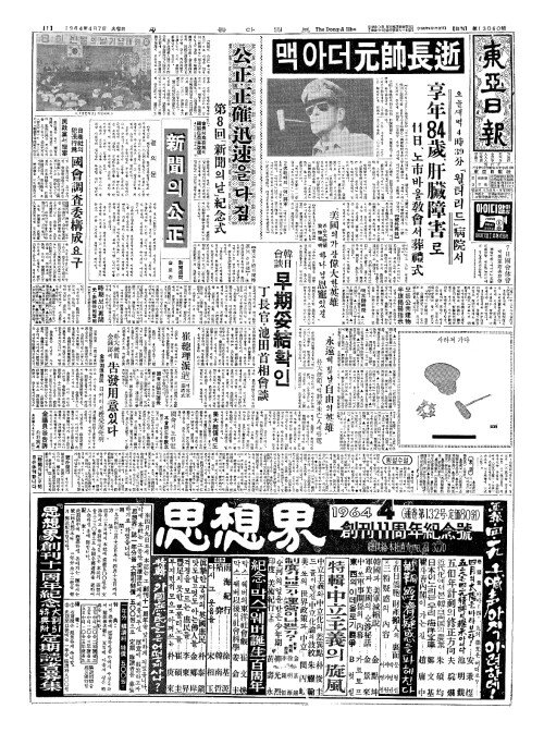 - [社説(사설)] 『老兵(노병)』은 사라졌다 『맥아더』元帥(원수)의長逝(장서)를弔(조)함