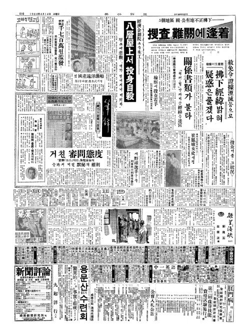 - 經濟企劃院(경제기획원)소속木工(목공)=八層屋上(팔층옥상)서 投身自殺(투신자살)