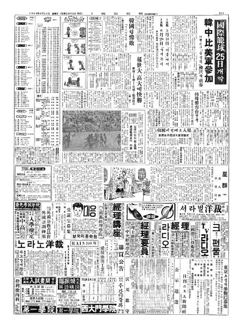 - 延世大(연세대)、高大(고대)에快勝(쾌승) 野球(야구)=5對(대)1·籠球(롱구)=90對(대)81로