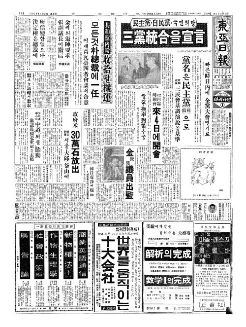 - 民主黨(민주당)·自民黨(자민당)·국민의당 三黨統合(삼당통합)을宣言(선언)