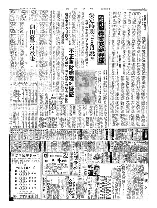 - "韓國政府(한국정부)의專決事項(전결사항)" 美官邊(미관변)、換率引上說論評回避(환률인상설논평회피)